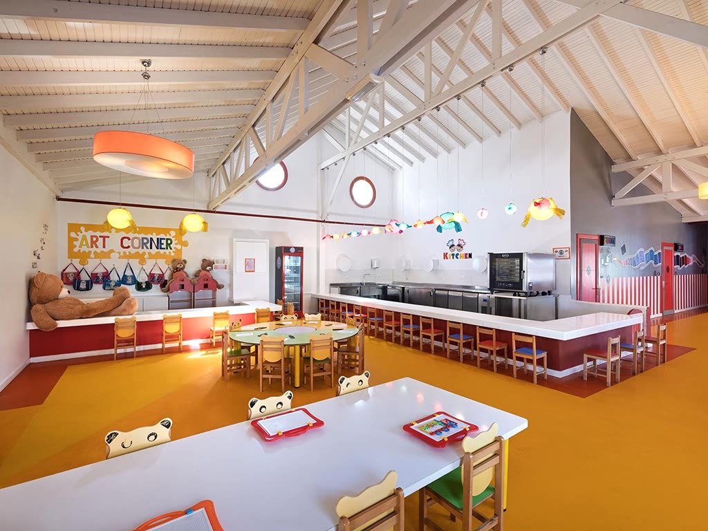 Groovy Kids Club & Cool Kids Club Groovy Kids Club& Cool Kids Club are serving kids of age groups 4 – 7 and 8 -11. Here you will find Reception and waiting area , Kitchen for kids activities , Soft Play area ,Lego area, activities & handcrafts area , 3 Sinema Rooms and Playstation room.The wide range of activities runs by trained staff and includes art projects, beach activities, pool games , hand crafts , sports and varieties of games.
